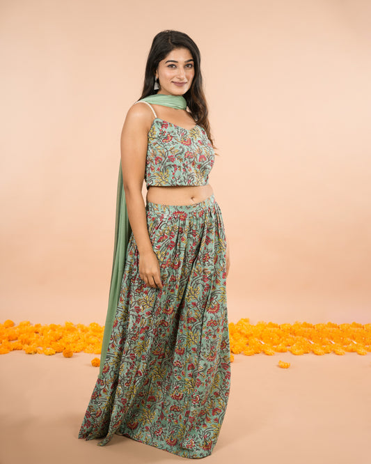 Green Floral Lehenga Choli with Dupatta