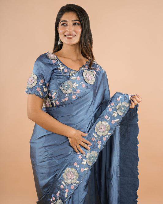 Teal Zardozi Saree