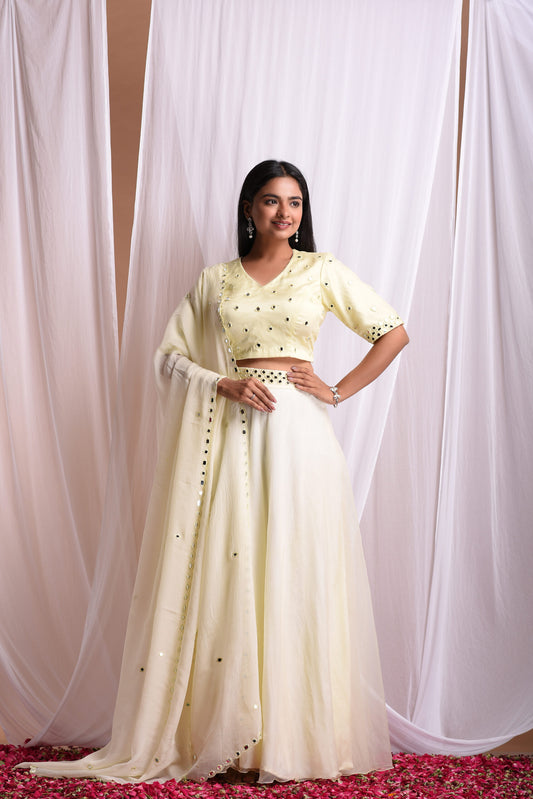 Yellow Mirror Embroidered Lehenga Set